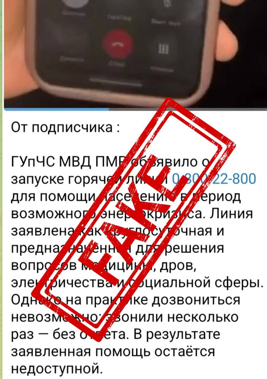 Главное управление по ЧС МВД ПМР не возобновляло работу горячей линии! Доверяйте информации только из официальных источников.