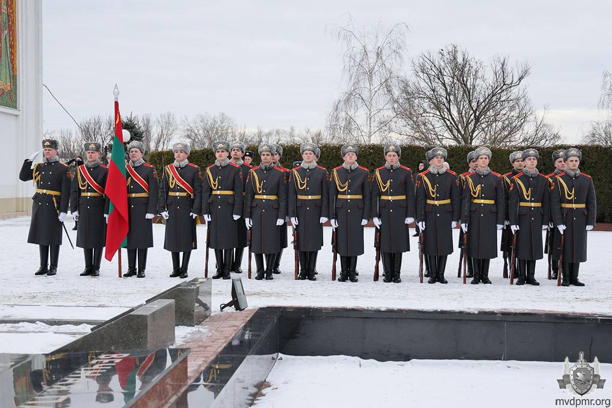 На церемонию прибыли заместитель Председателя Правительства ПМР Виталий Нягу, представитель Верховного Совета Приднестровья, и. о. министра внутренних дел ПМР Андрей Барабаш, замминистра внутренних дел – начальник ГУпЧС, руководители других силовых структур, государственных учреждений, ветераны ТСО, курсанты и кадеты милицейских учебных заведений. Среди почётных гостей в возложении цветов принял участие первый руководитель страны Игорь Николаевич Смирнов.