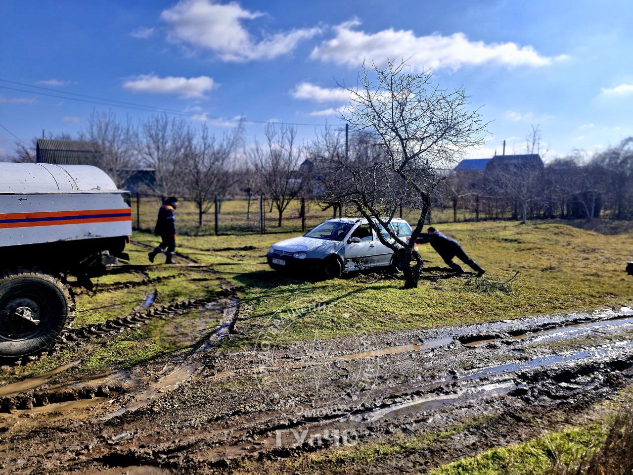 Сегодня в Слободзее Фольксваген увяз в грязи у дачных участков недалеко от парома. Спасатели тянули авто служебным Уралом.