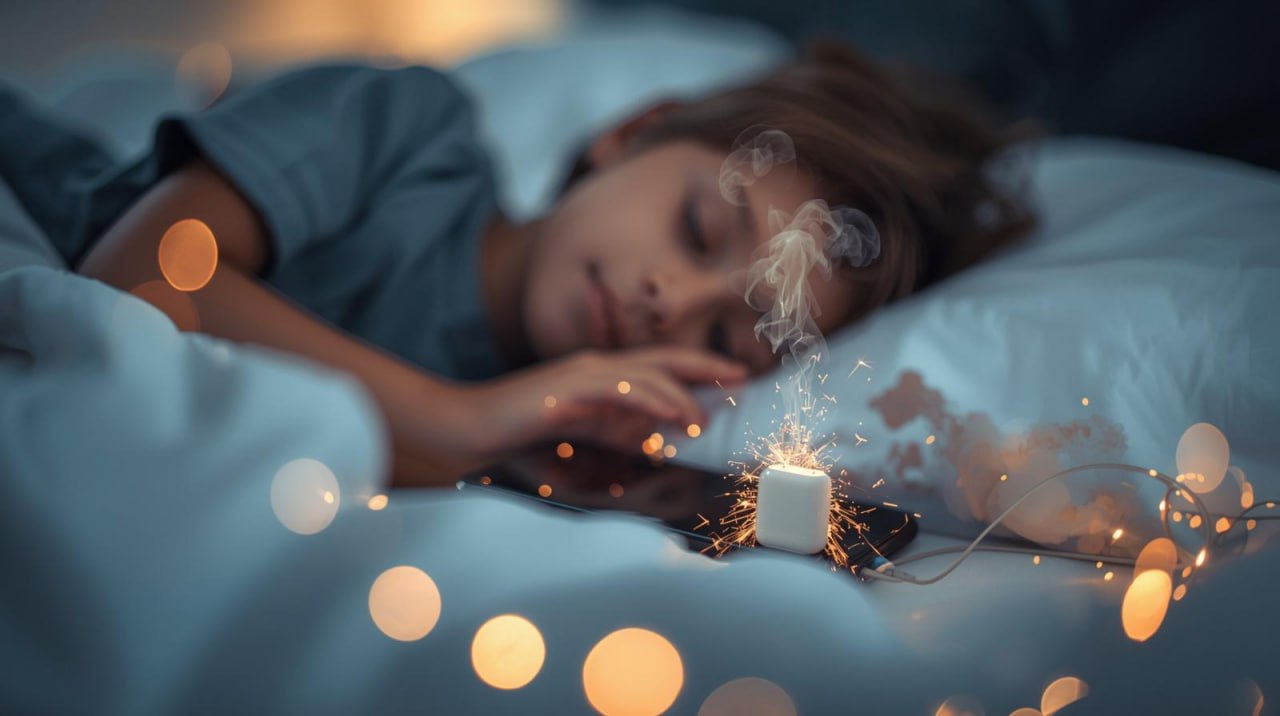 Не уснул ли твой ребенок с телефоном на зарядке?