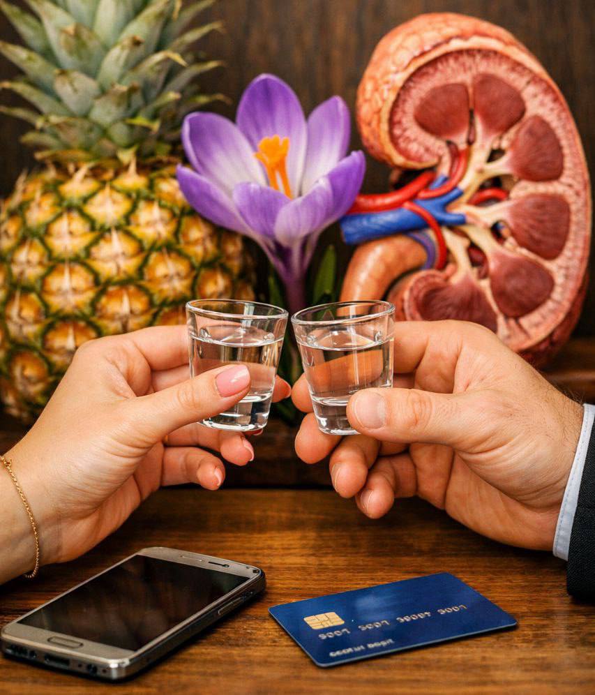 Выпив «за почки, ананасы и крокусы» (12 марта отмечается всемирный день всего перечисленного), утомлённый алкоголем хозяин отправился спать. Сотрапезница же в праздничном настроении поспешила домой. По дороге её посетила идея: она вспомнила, что на столе у дяди лежал его телефон и банковская карта.