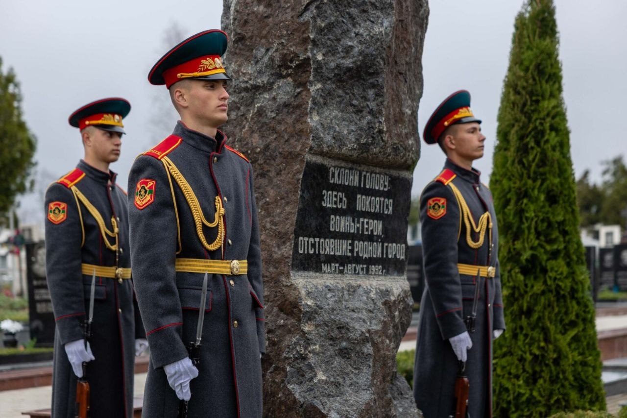 Приднестровцы почтили погибших гвардейцев, ополченцев, сотрудников милиции и мирных жителей минутой молчания и возложением цветов.