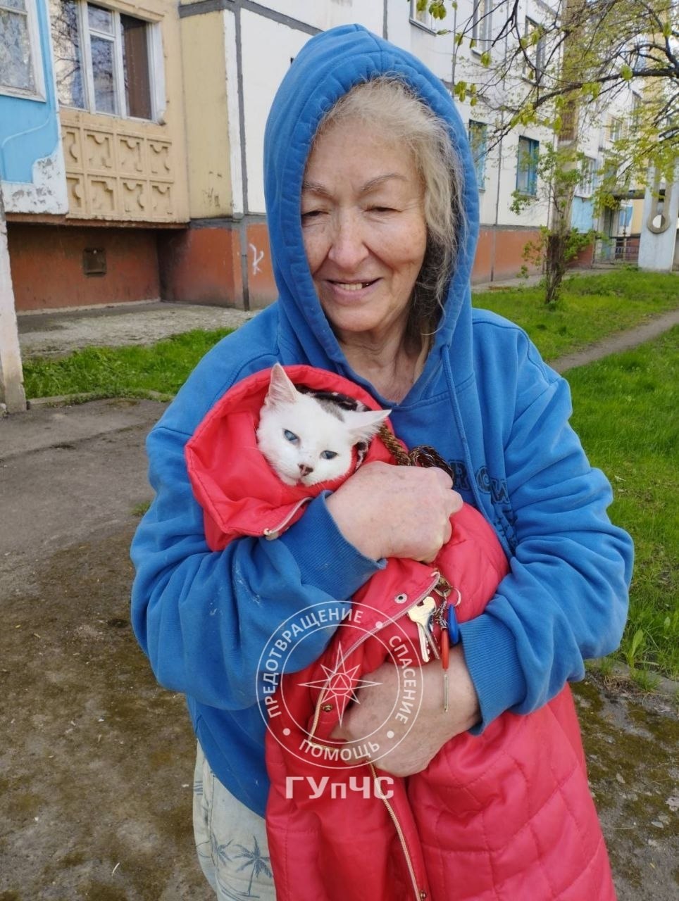 Сначала сотрудники АСП поднялись к соседям сверху и специальным багром направили кота, чтобы он спустился ниже. Уже потом с помощью лестницы сняли его с низких веток и отдали хозяйке.