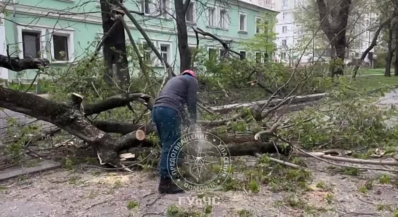 В столице, на улице Восстания, крупное дерево упало на два автомобиля. У «Мазды» и «Тойоты» помяты крыши, разбиты окна. Столичные огнеборцы и спасатели делали всё необходимое, чтобы вытащить машины из-под веток.