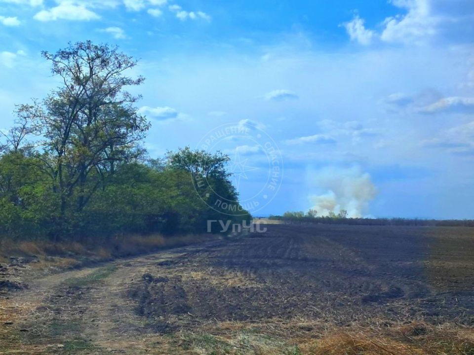 Огонь пришёл с пастбища, перекинулся на лесопосадку вдоль дороги. В помощь выехали сотрудники АСП. В тушении помогают и местные жители. Примерная площадь – 5 гектаров.©...