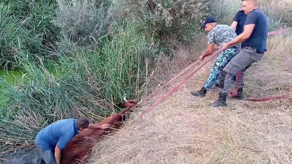 Бурёнка свалилась с крутого берега в ручей Светлый. Увязла в иле и не могла выбраться, только жалобно мычала несколько часов. Хозяин и соседи не смогли её вытащить самостоятельно, как не пытались. Позвонили на единый номер спасения...