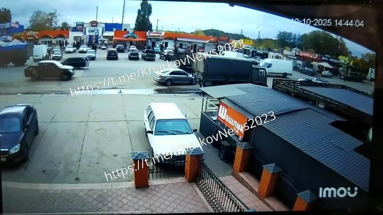 Момент удара барражирующим боеприпасом «Ланцет» по грузовику ВСУ в Изюме Харьковской области
