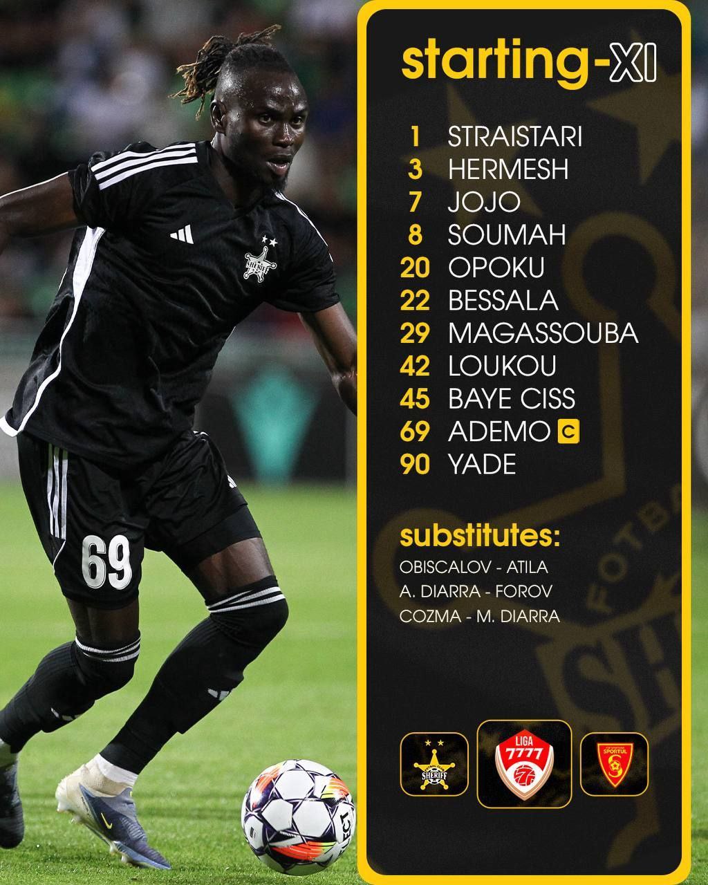 «Шериф» опубликовал стартовый состав на матч. До начала игры осталось 40 минут.
