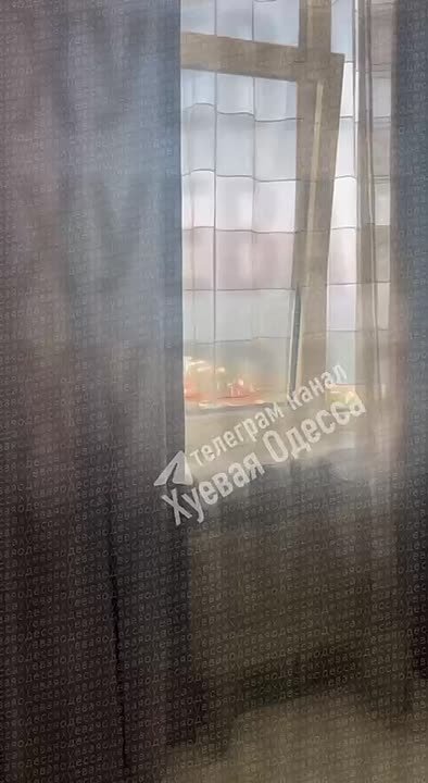 Кадры попадания сбитой "титанами ППО" "Герани" в жилой дом в Одессе.