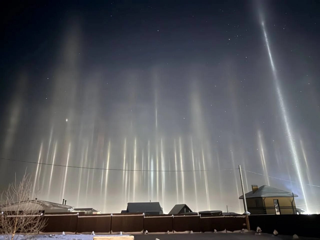 Это оптический эффект, когда свет отражается от плоских ледяных кристаллов в воздухе. Из-за этого кажется, будто в небе стоят большие светящиеся иглы.