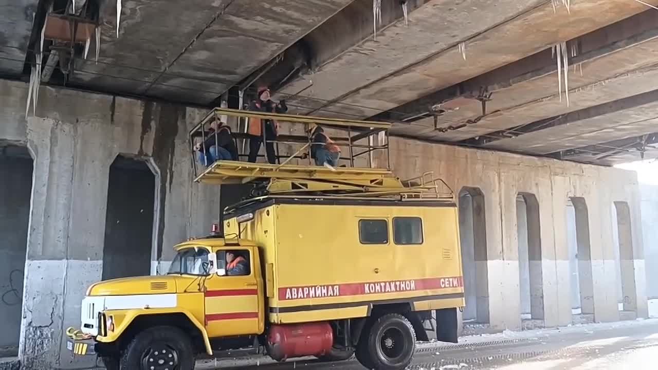 В Бендерах сбивают сосульки под мостом у фабрики «Флоаре»