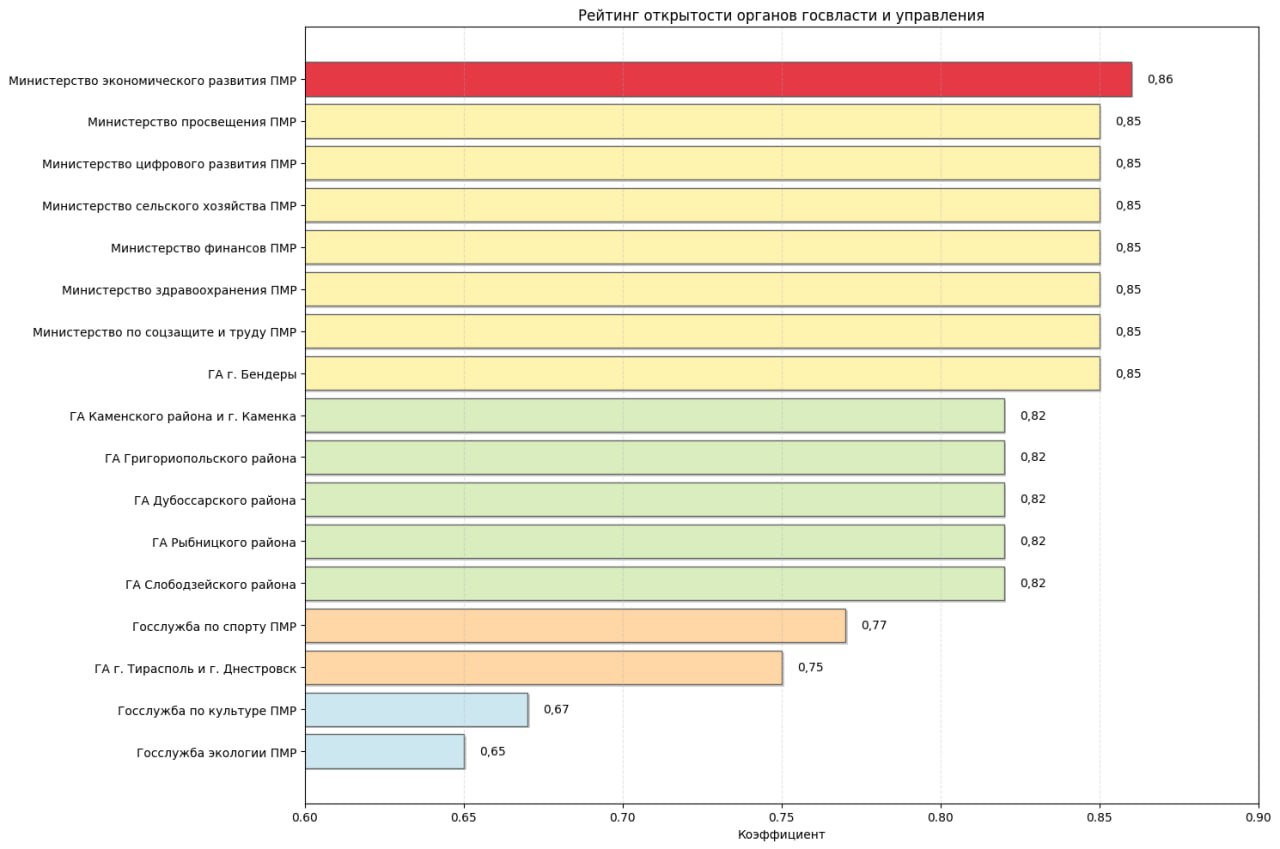 2 место — Минпрос, Минцифры, Минсельхоз, Минфин, Минздрав, Минсоц и госадминистрация Бендер
