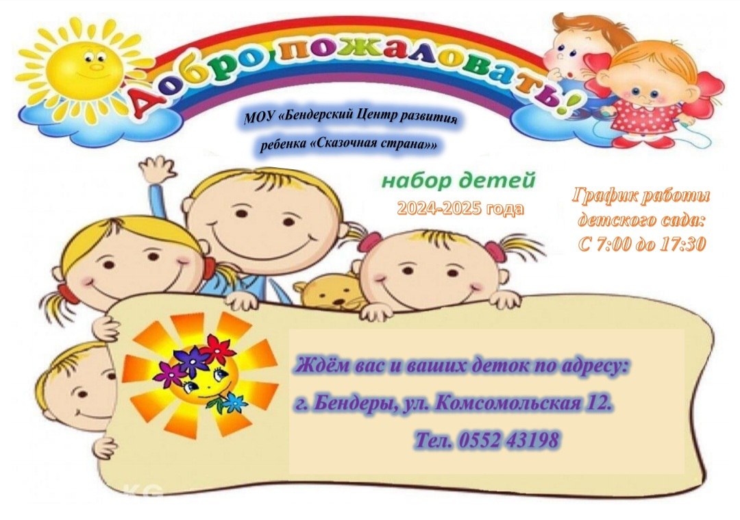 МОУ «Бендерский Центр развития ребенка «Сказочная страна» приглашает родителей и малышей 2024–2025 годов рождения в наш дружный коллектив!