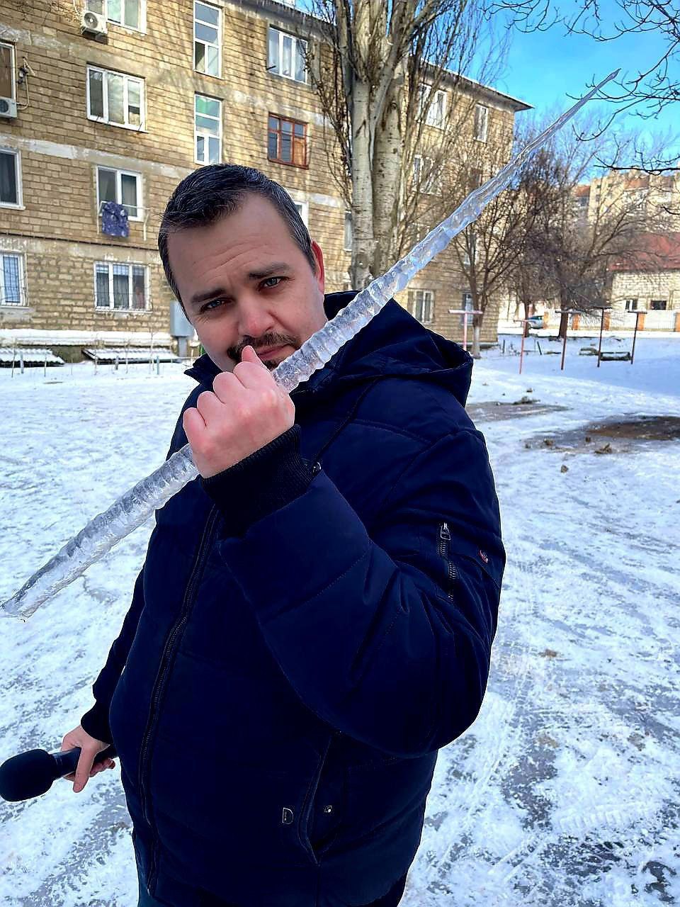 Наш коллега с Первого Приднестровского ведёт борьбу с сосульками