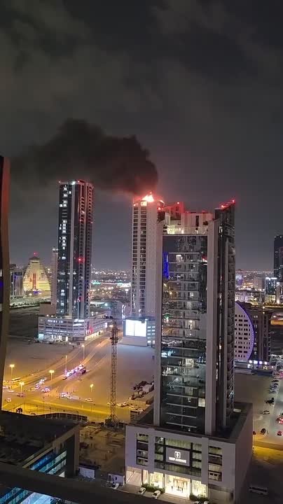 Видео последствий вчерашнего прилета по крыше одного из небоскребов в Бахрейне. Там размещался кто-то из американцев.