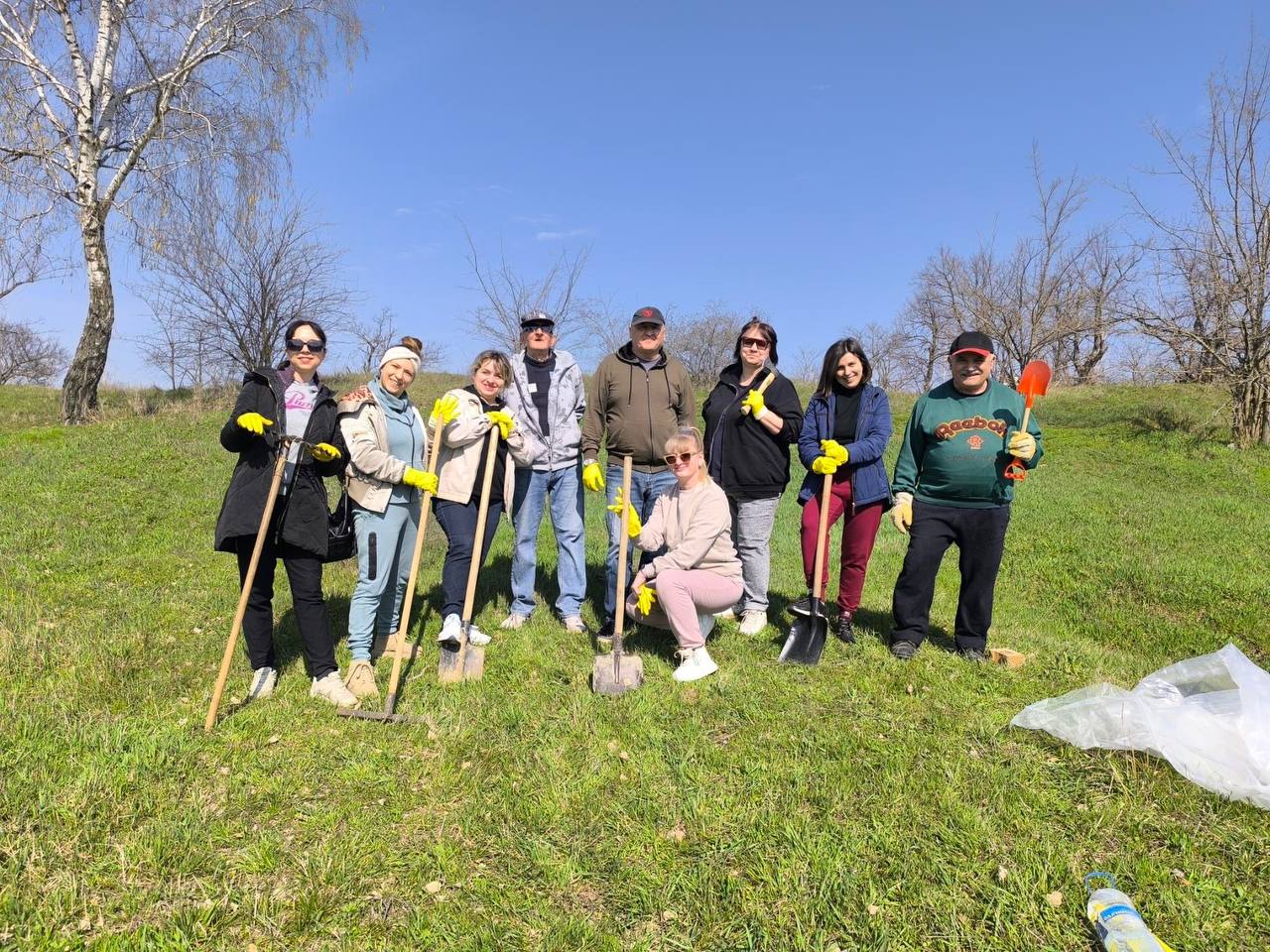 Жёлтые перчатки стали своеобразной «униформой» для этой группы участников субботника.