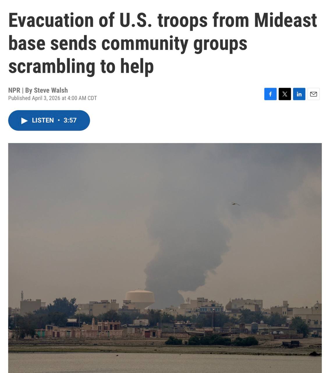 США эвакуировали около 1500 военнослужащих с базы 5-го флота в Бахрейне после того, как она подверглась атаке иранских ракет и беспилотников, — NPR.
