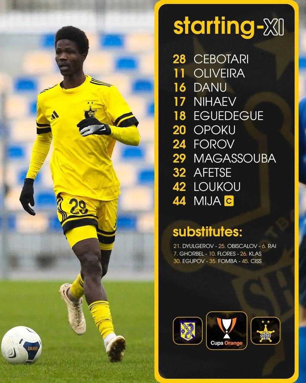 «Шериф» опубликовал стартовый состав на игру с «Дачией». Матч начинается, включайте ТСВ.