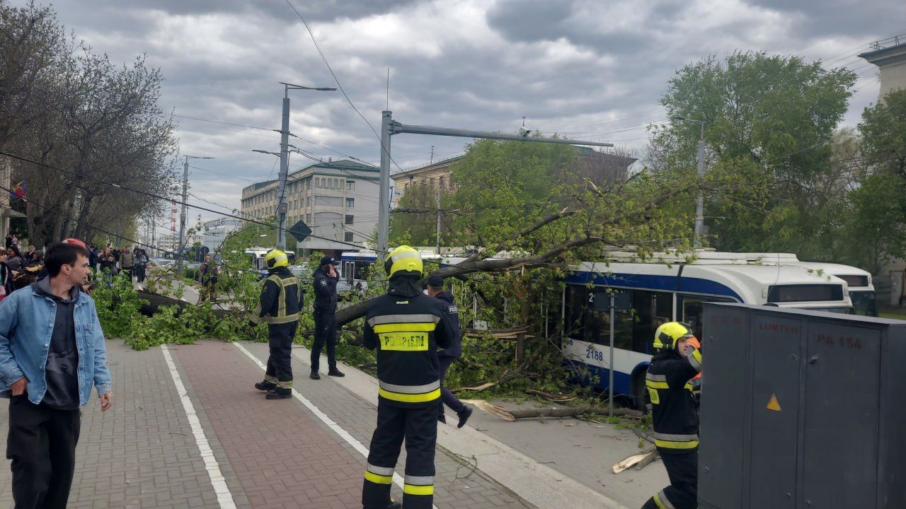 Дерево упало на троллейбус на главной улице Кишинёва. Пострадавших нет.