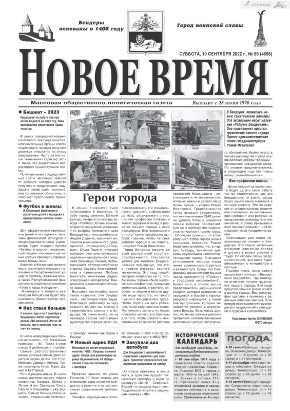 Вышел в свет очередной номер газеты «Новое время»В этом выпуске: В Бендерах появились новые тематические баннеры. Эта экспозиция носит название «Рабочие бендерчане». Она прославляет простых тружеников нашего города. Проект прокомментировал глава...