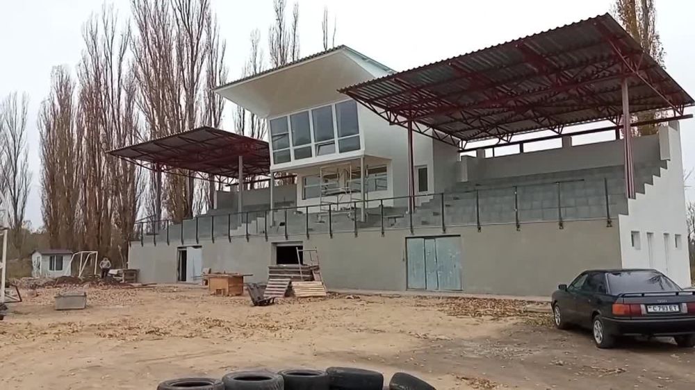 Трибуны с комментаторской кабиной на картодроме в Григориополе