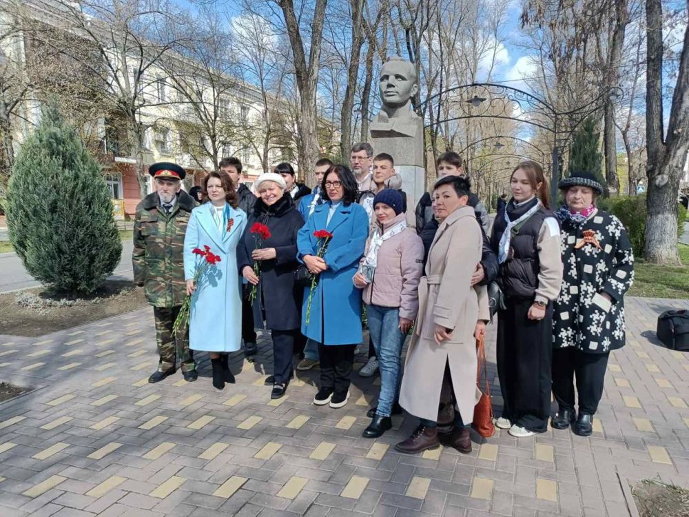 Галина Антюфеева и Илона Тюряева вместе с активистами молодёжного «Обновления» возложили цветы к бюсту Гагарина на одноименном бульваре.