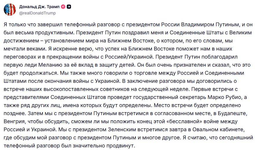 Трамп: Путин и я встретимся в Будапеште, чтобы обсудить, сможем ли мы положить конец этой «бесславной» войне между Россией и Украиной.