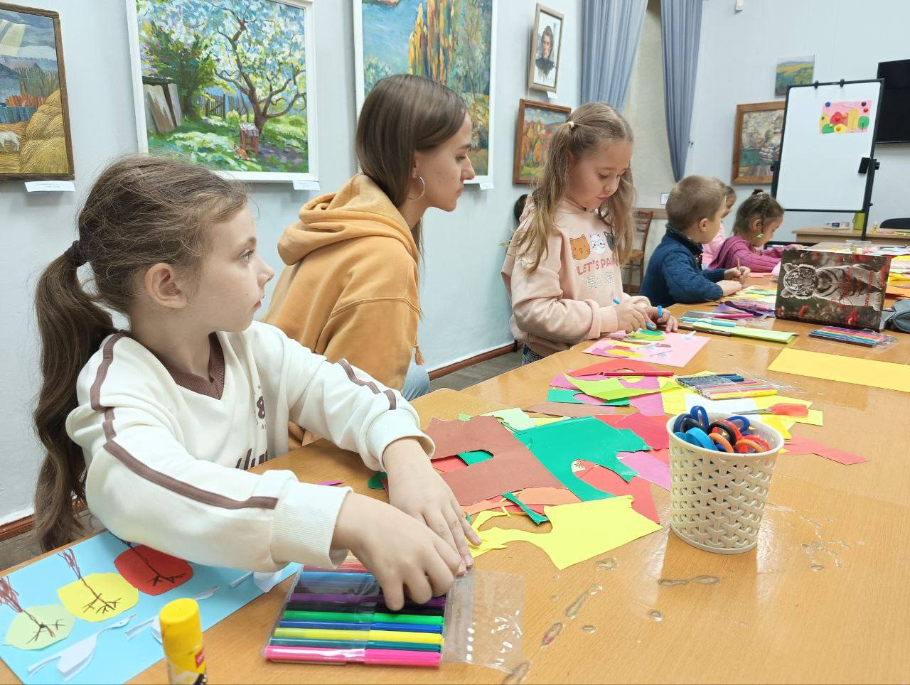 В художественном музее маленькие и взрослые художники готовятся к празднованию Дня города.