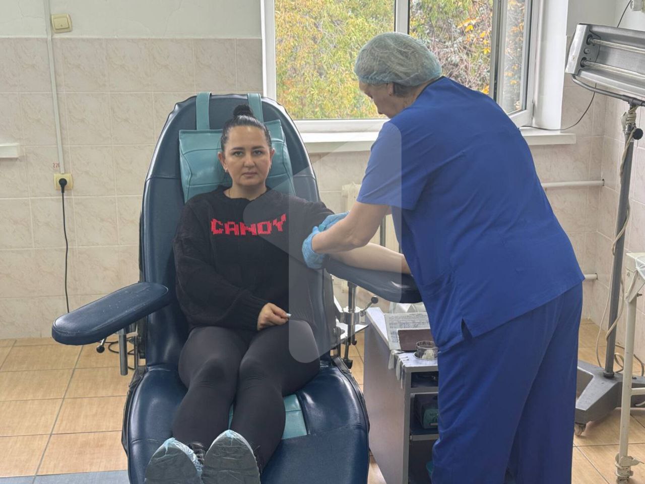Это Оксана Граненко из Днестровска. Сегодня в 36-й раз приехала в столичный Лечгородок сдавать кровь. Женщина всё ближе к званию «почётный донор». Для этого нужно сдать кровь 40 раз.