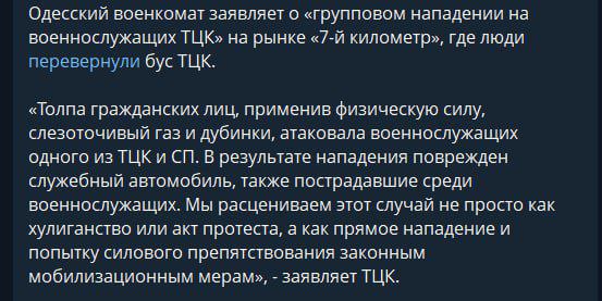 Видео момента переворачивария буса ТЦК-шников на 7 км. Перед этим часть работников ТЦК сбежали на рынок, их потом забирала полиция. А остальные уехали на бусике ( которому тоже досталось )