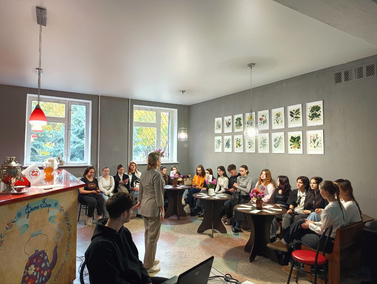 После теоретической части молодые люди смогли увидеть работу современного медицинского оборудования и даже провести ультразвуковое исследование печени под руководством специалистов. Гостей угостили фирменным фиточаем, приготовленным из натуральных трав.