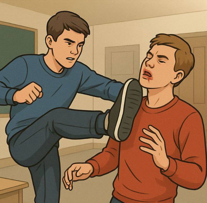 18-летний ударил 19-летнего одногруппника ногой по лицу — у пострадавшего ушибленная рана губы.