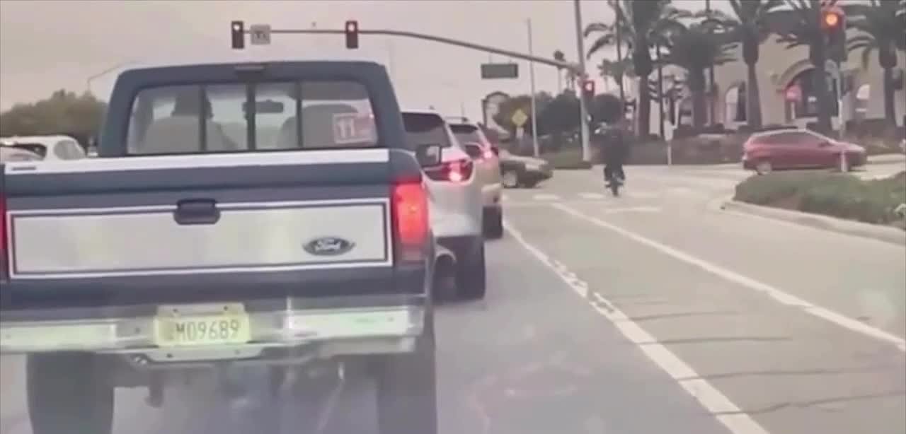 Подросток на мотоцикле пролетел на красный и врезался в машину в Калифорнии — байк вспыхнул, а сам он, охваченный пламенем, некоторое время бегал по дороге.
