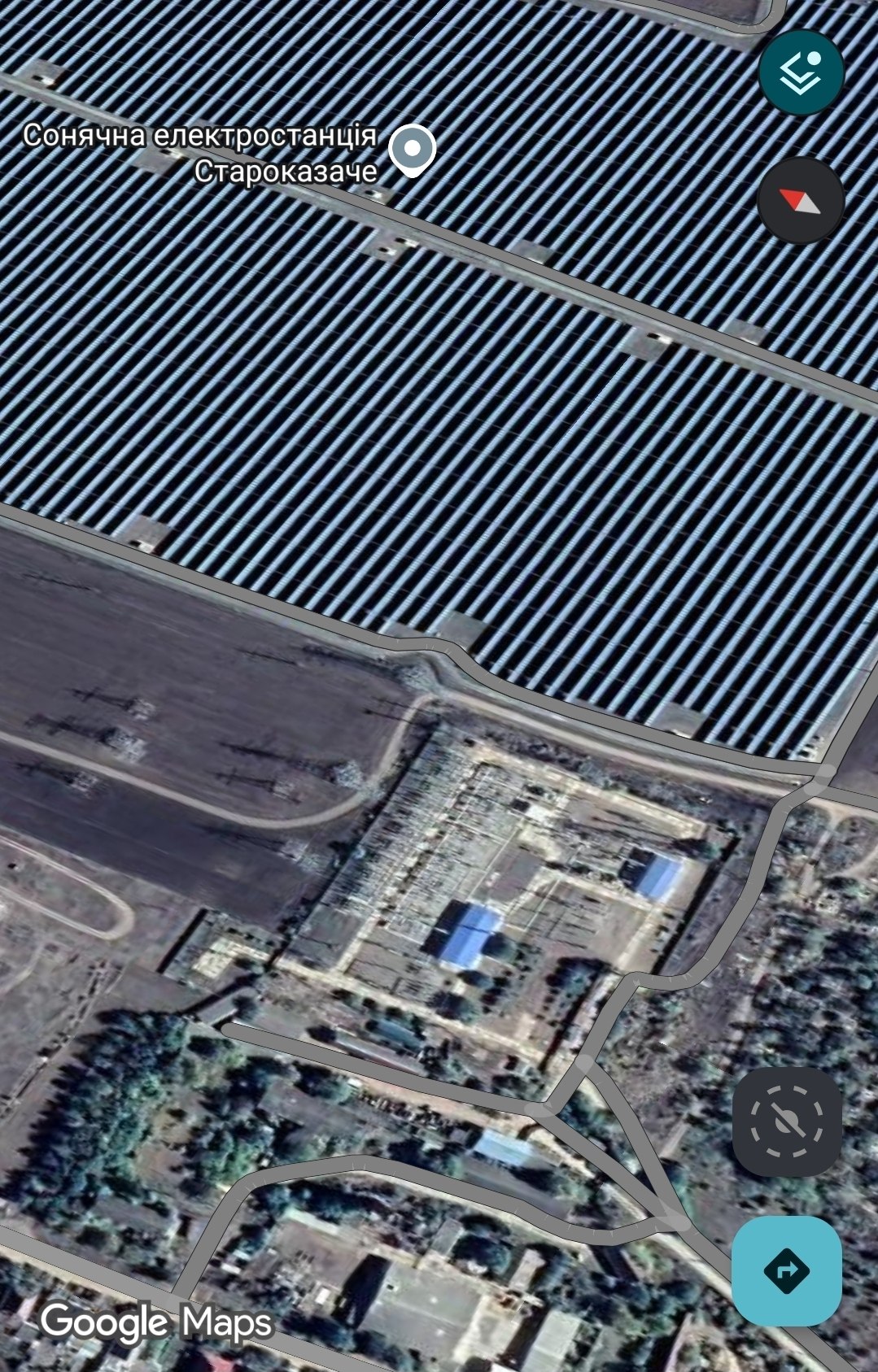 Эпизоды ночного налёта 25 дронов "Герань" по инфраструктуре солнечной электростанции и её подстанции в селе Староказачье Одесской области. На месте прилётов разгорелся крупный пожар.