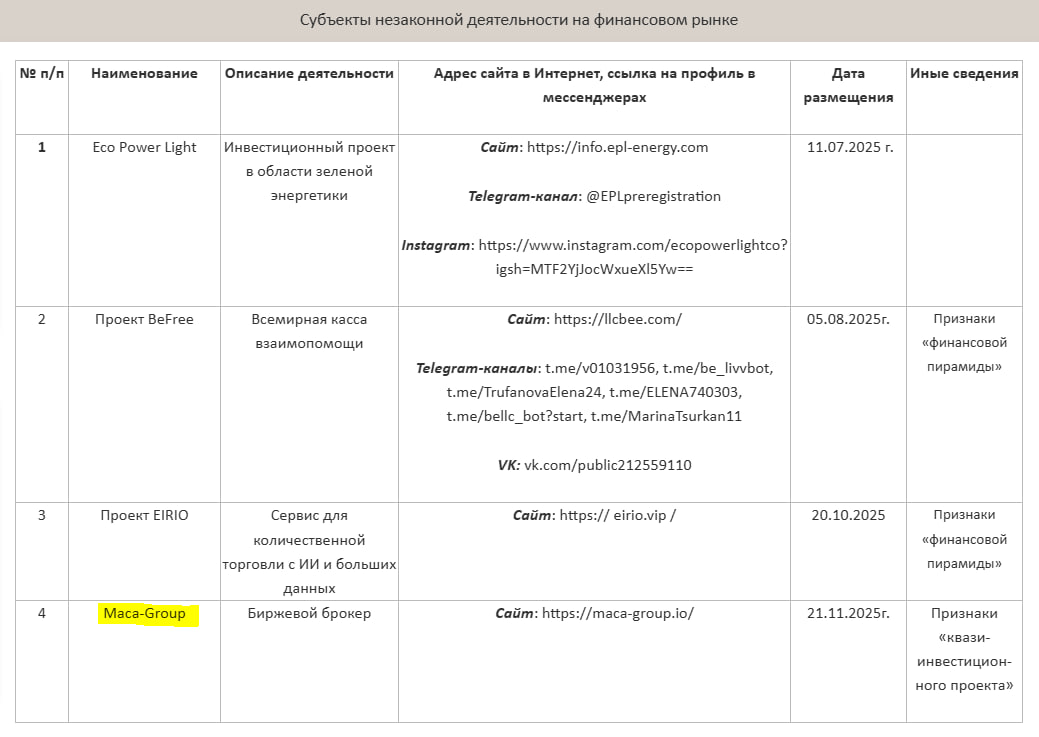 ПРБ внёс «Маса-Group» в список потенциально мошеннических инвестиционных проектов. Людей обманывают под видом брокерских услуг. Инвесторы жалуются на невозможность вывода средств, агрессивные продажи и поддельные лицензии.