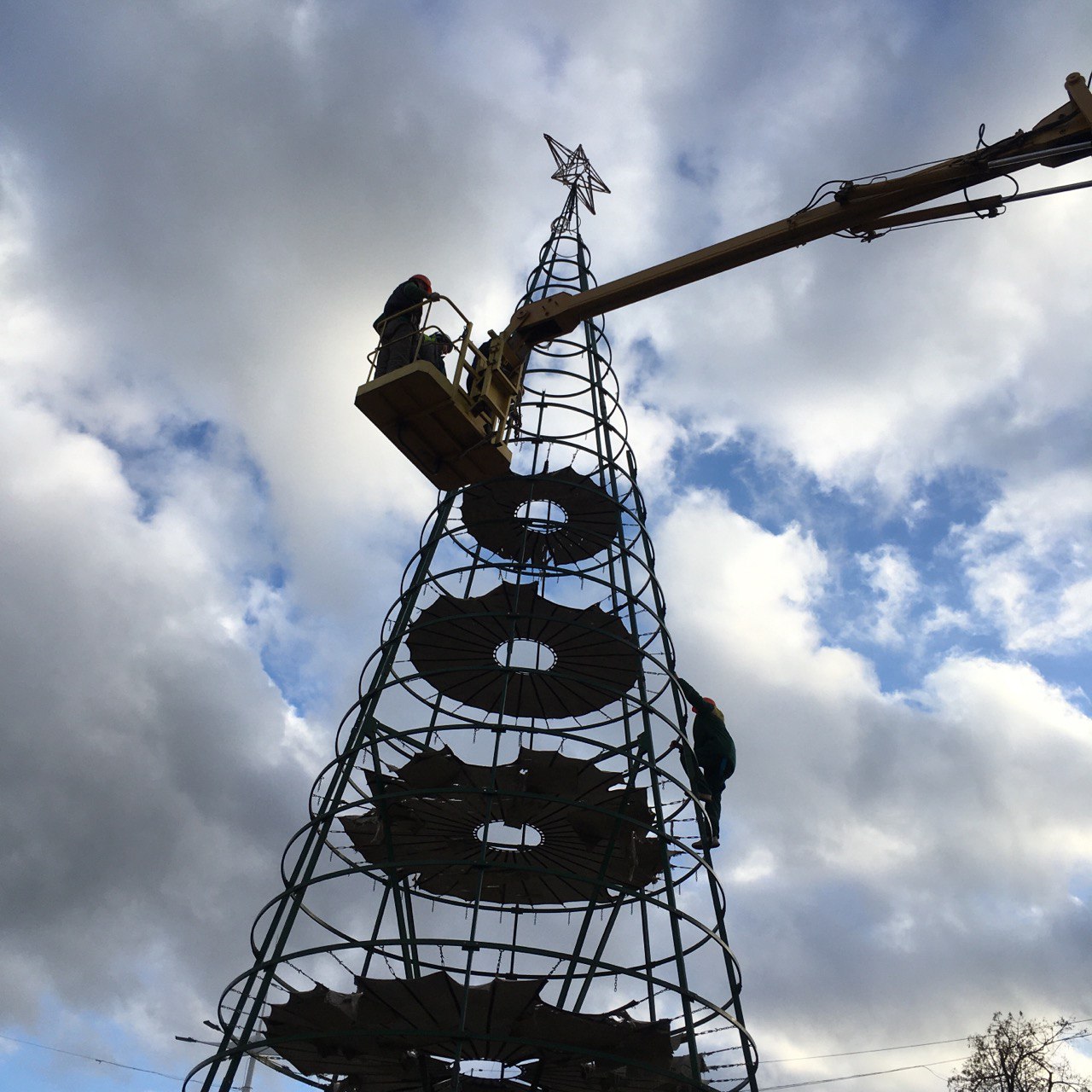 В Бендерах собрали основу ёлки и установили звезду (фото @bendery_tv)