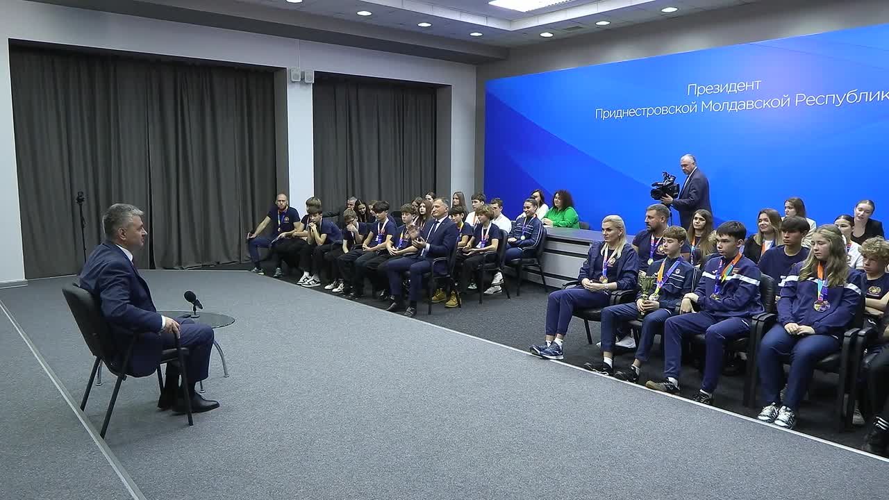 По уже сложившейся традиции Президенту подарили футболку приднестровской команды, которая участвовала в фестивале школьного спорта в Москве