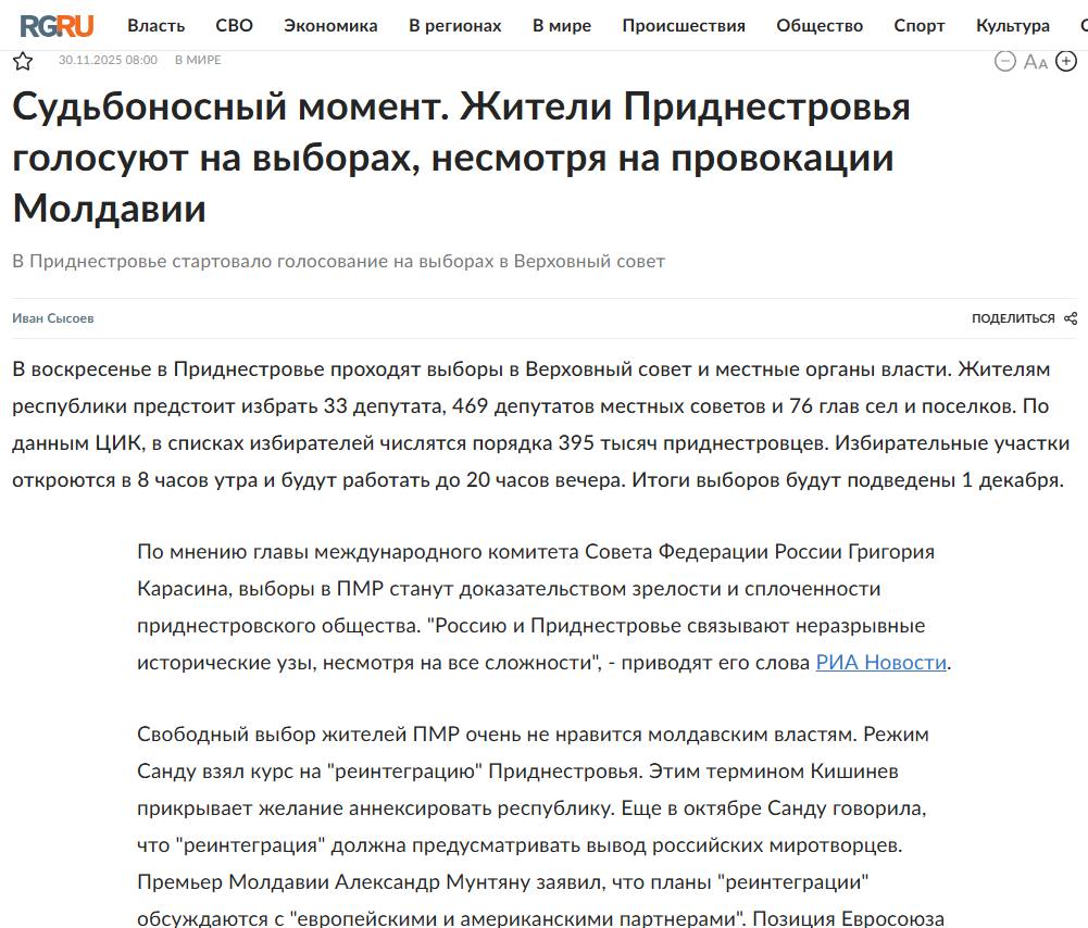 СМИ России в статье и выборах в Приднестровье приводят цитату Григория Карасина: