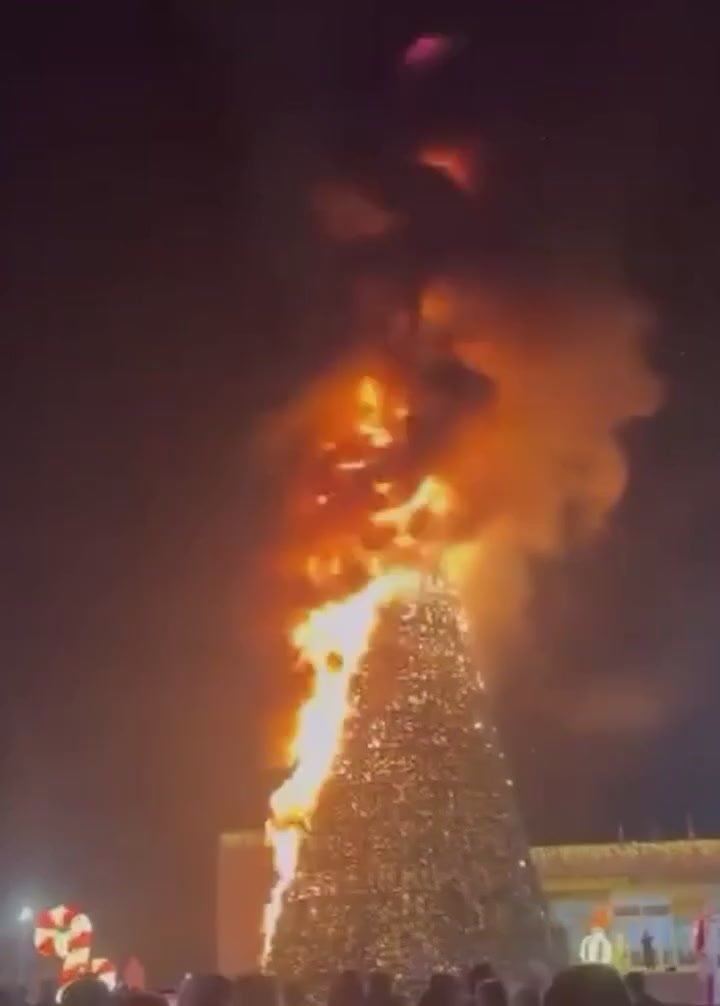 Новогодняя елка полностью сгорела в грузинском Гардабани во время торжественной церемонии включения иллюминации