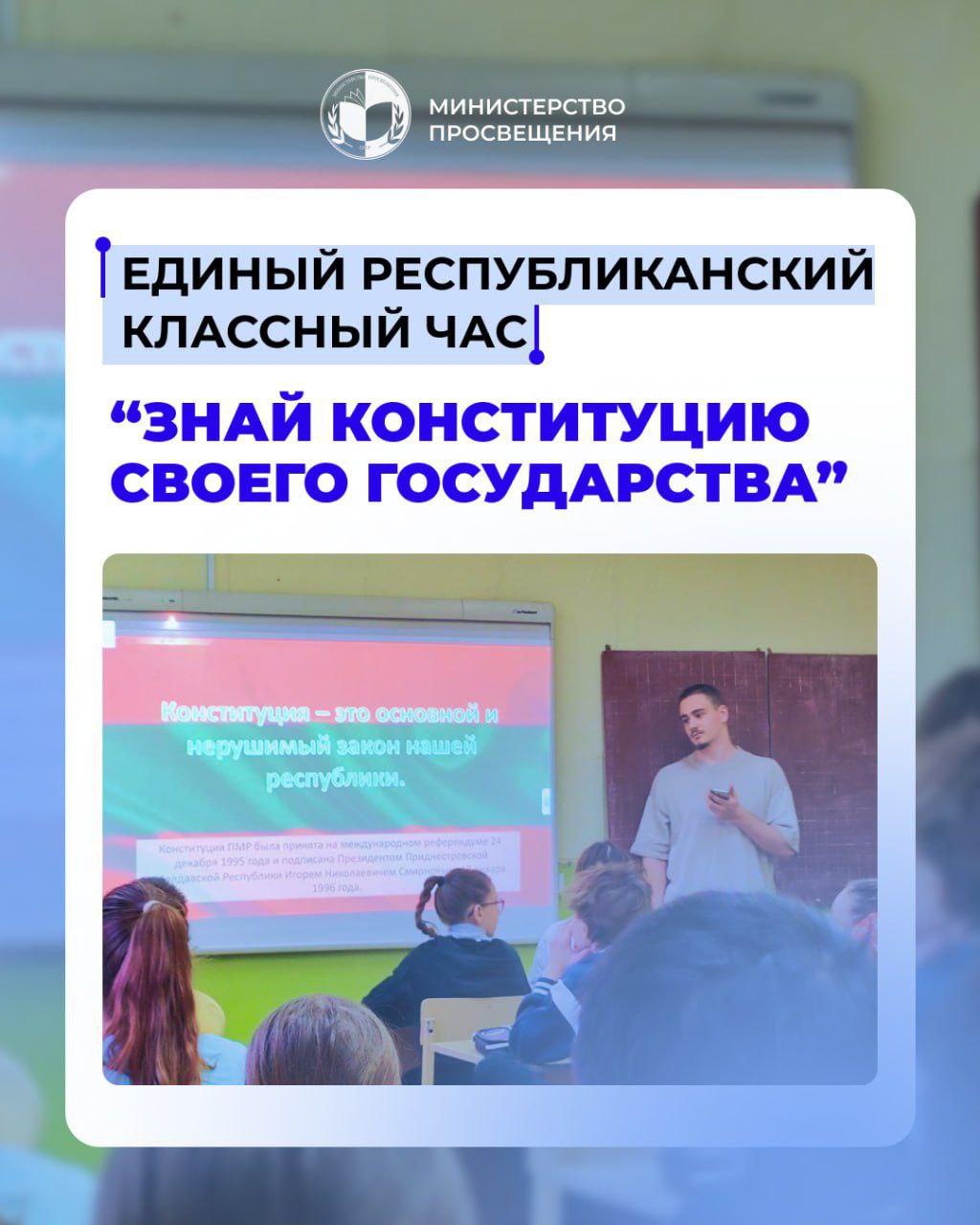 Единый республиканский классный час «Знай Конституцию своего государства» прошёл в образовательных учреждениях Приднестровья