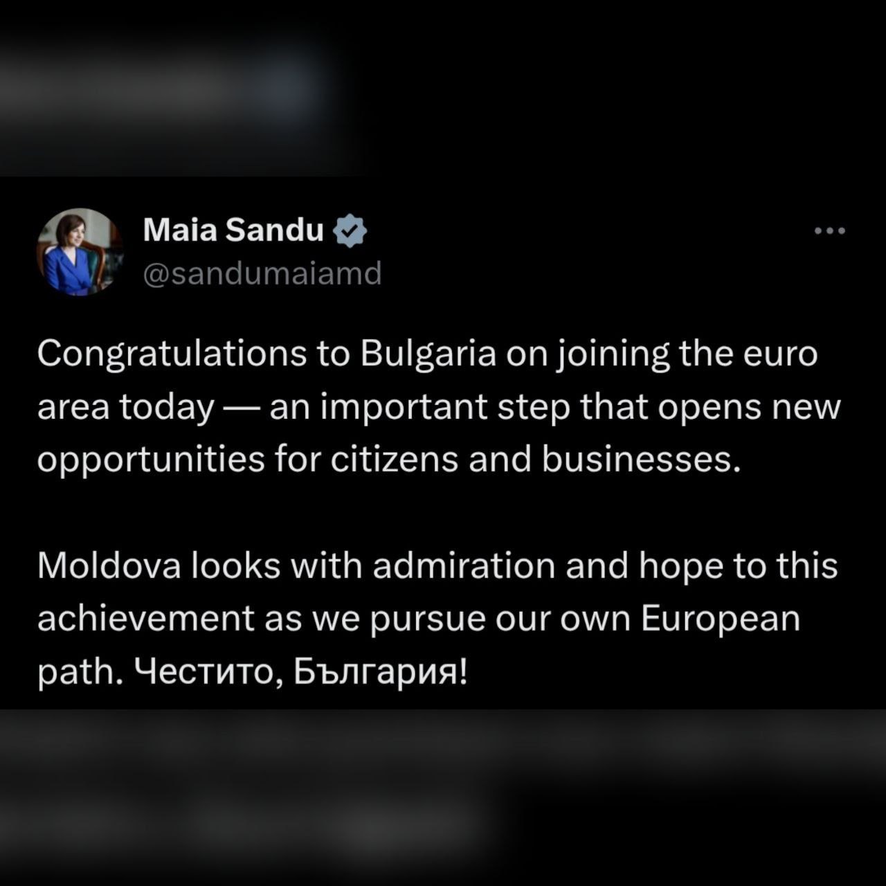 Майя Санду вслед за Урсулой фон Дер Ляйен поздравила Болгарию с потерей финансового суверенитета — Болгария перешла на евро