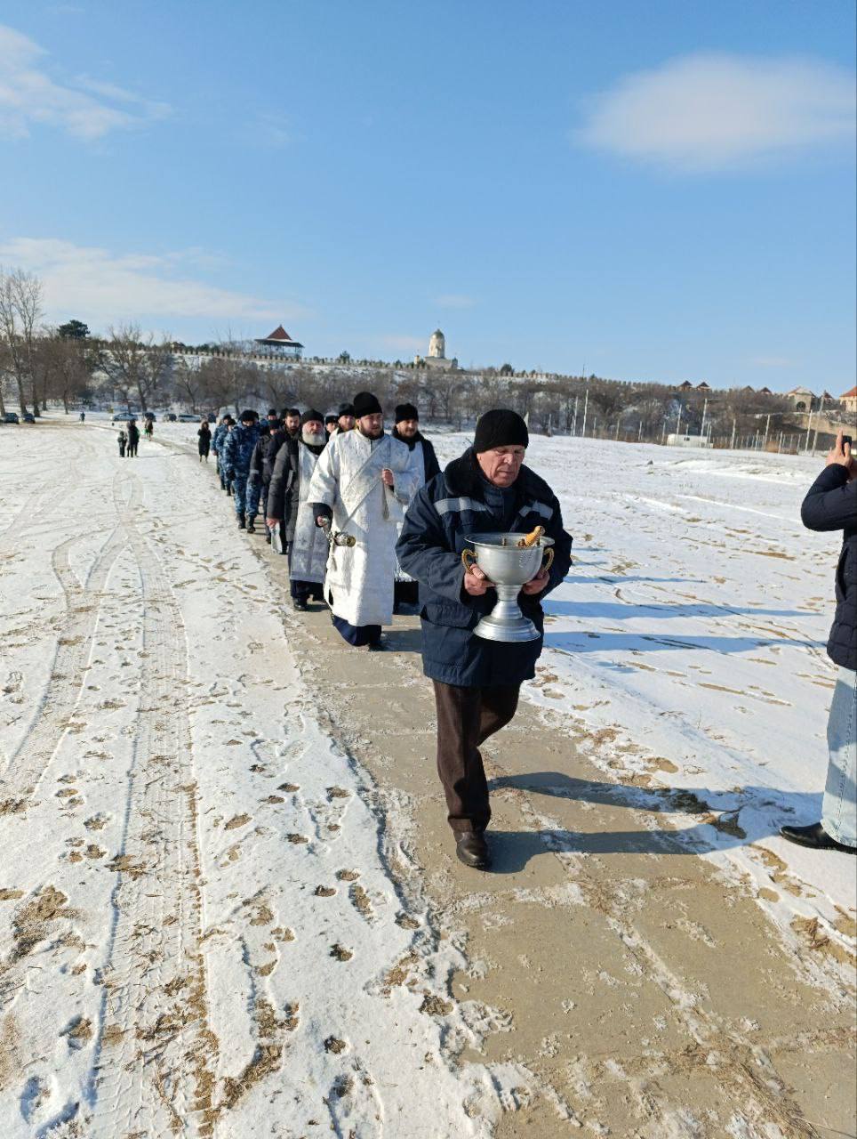 После богослужения состоялся крестный ход, церковнослужители совершили обряд освящения вод Днестра.