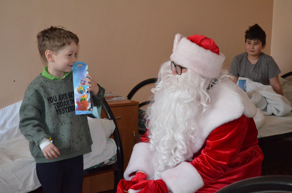 В праздник Крещения Дед Мороз, настоятель Свято-Вознесенского Ново-Нямецкого Кицканского монастыря архимандрит Паисий и вице-спикер Галина Антюфеева навестили маленьких пациентов Республиканского центра матери и ребёнка