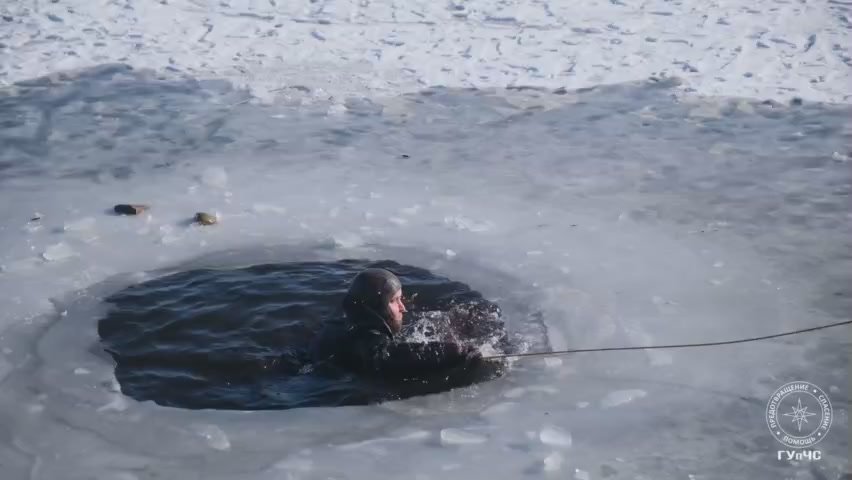 Для учеников столичной гимназии водолазы ГУпЧС провели мастер-класс по спасению людей, провалившихся под лёд