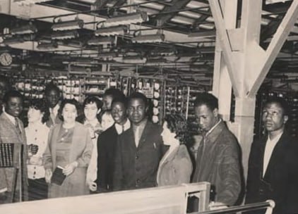Студенты Университета дружбы народов имени Патриса Лумумбы на экскурсии на Шёлковом комбинате. Бендеры,1960 год.