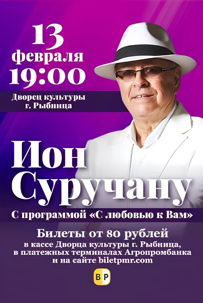 13 февраля в 19:00 в Дворце культуры состоится концерт легендарного артиста Иона Суручану с программой «С любовью к Вам»