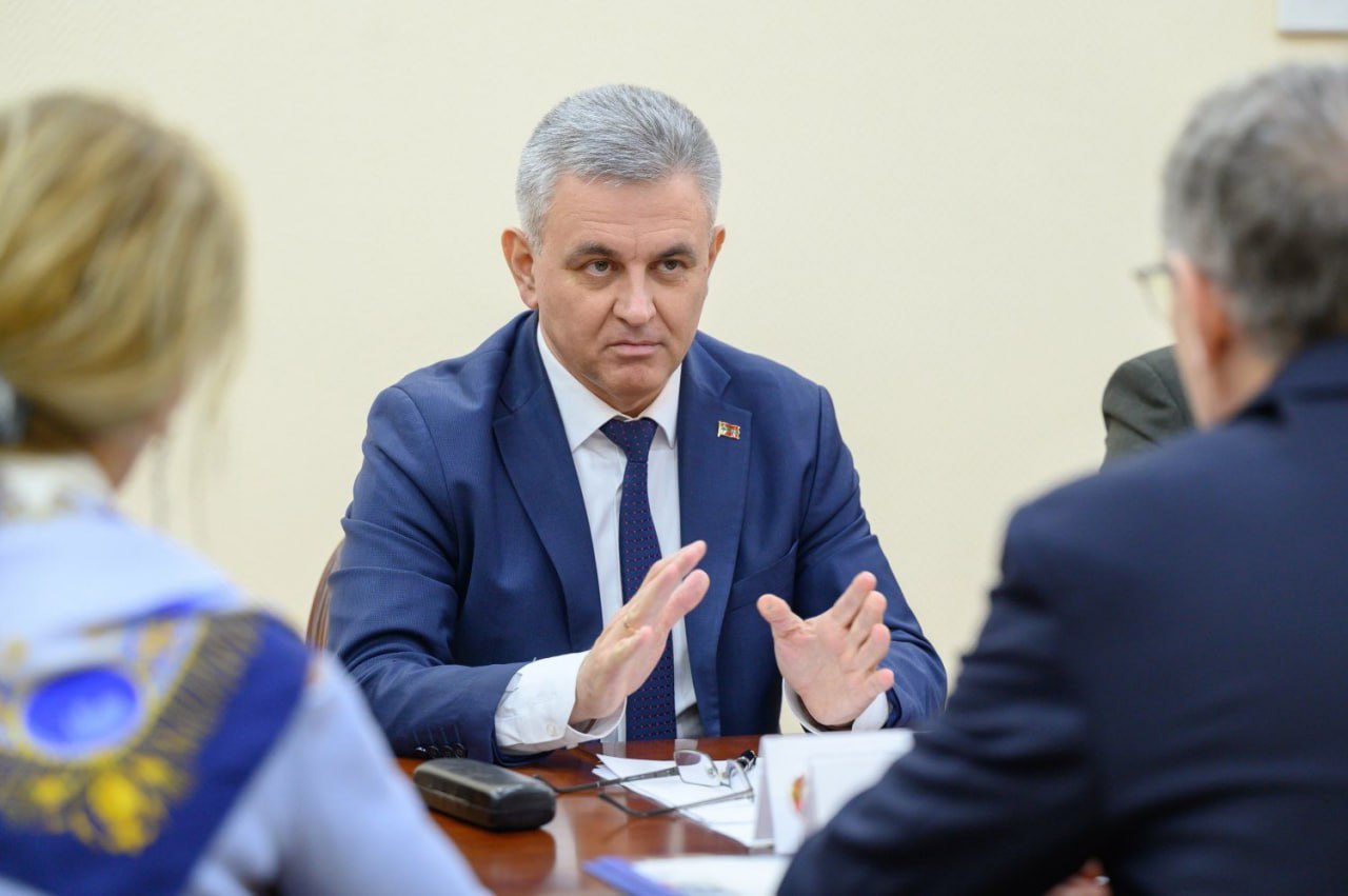 Приднестровье стремится решать все вопросы исключительно за столом переговоров – Президент Вадим Красносельский на встрече с послом Канады в Молдове Гэвином Бьюкеном.