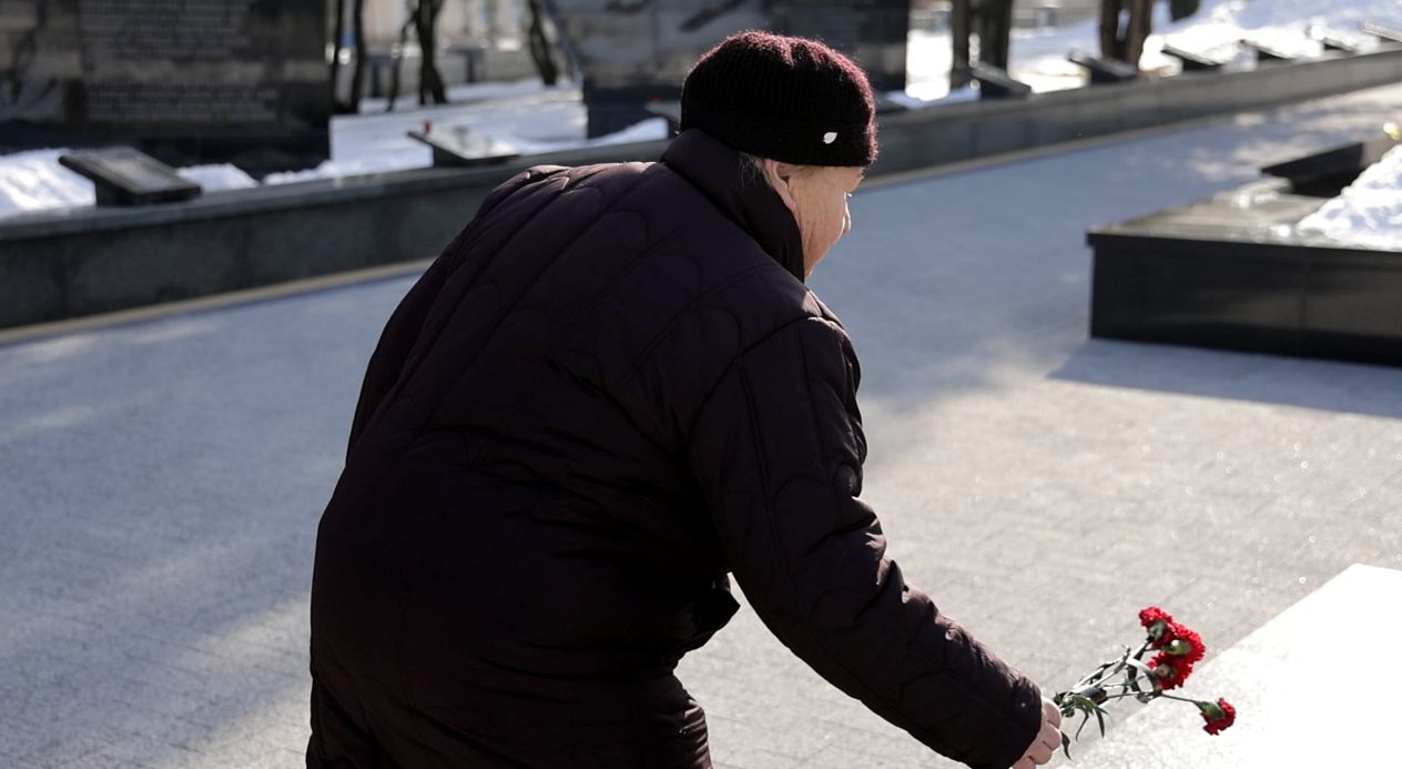 Лора Александровна возложила цветы на Площади Героев в Бендерах. На вопрос, к кому пришла, отвечает – ко всем защитникам, в разные времена стоявшим за мир.