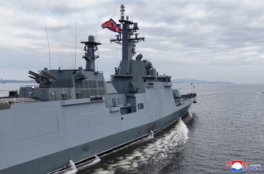 Ким Чен Ын наблюдает за залпом крылатых ракет с борта эсминца "Чвэ Хён" который проходит финальный этап испытаний и в скором времени будет принят на вооружение.