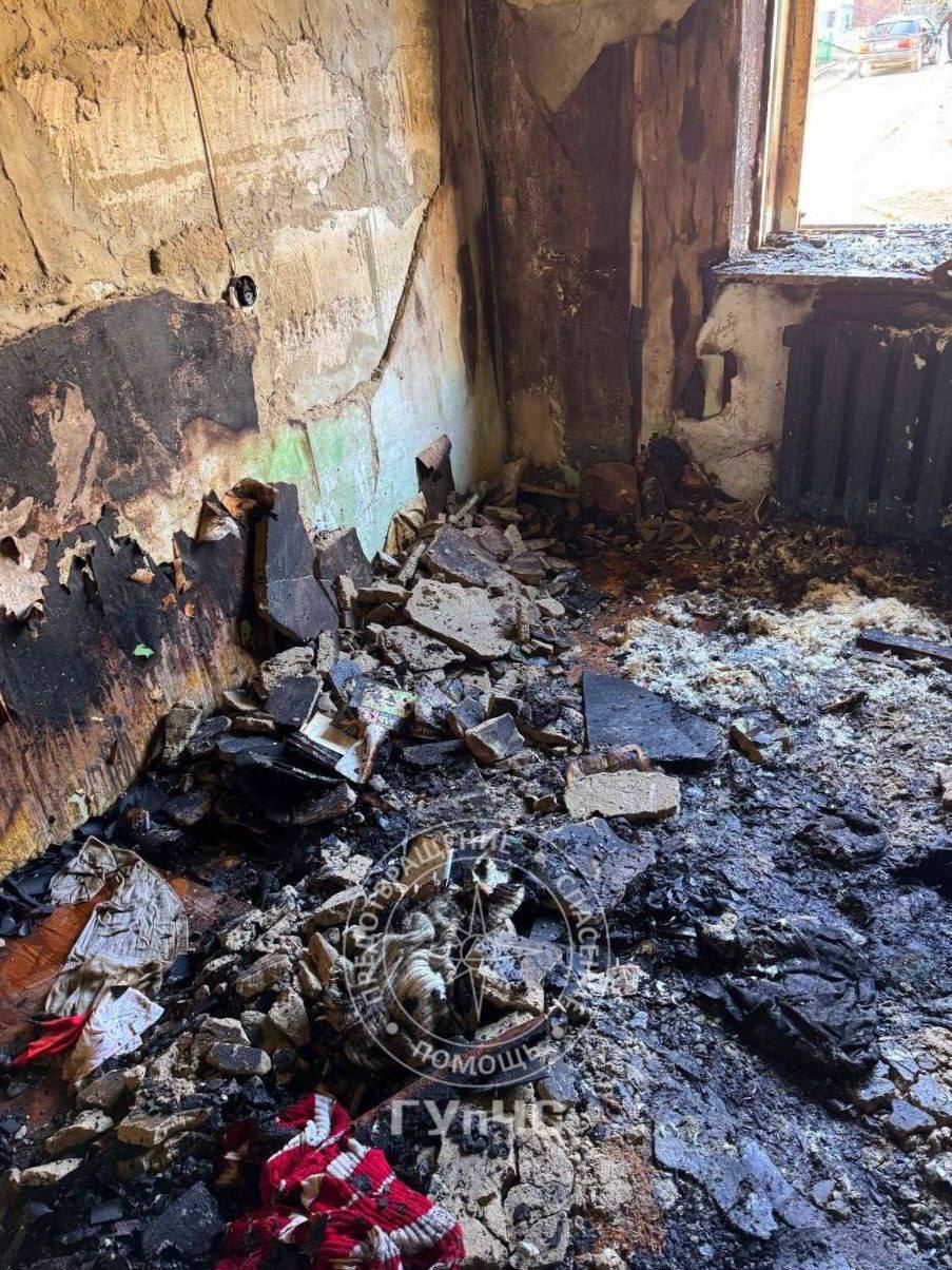 Пожар потушили за полтора часа. Комната и часть коридора сгорели полностью. В подъезде было сильное задымление, поэтому жильцов верхних этажей огнеборцы вывели на улицу.